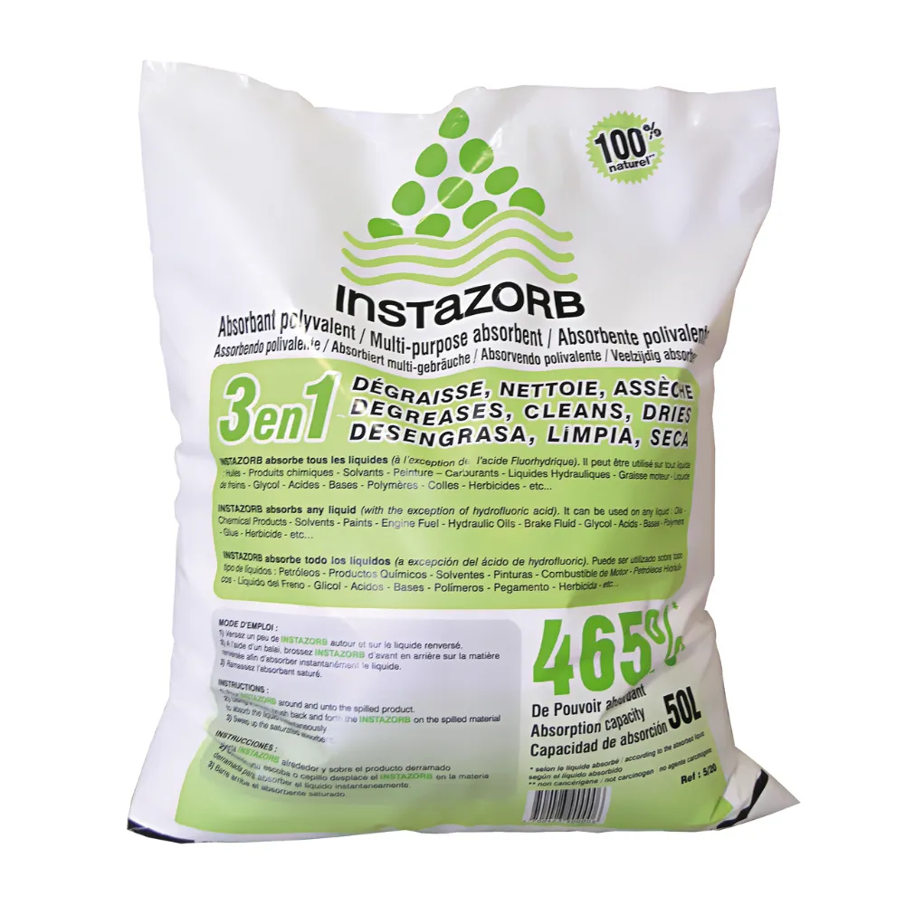 Por otro lado, los absorbentes granulados tradicionales tienen una capacidad de absorción mucho menor, con un máximo de 1 a 2 veces su peso. Esto significa que necesitarás un mayor volumen de material para gestionar el mismo derrame, lo que aumenta los costes y el tiempo de actuación.