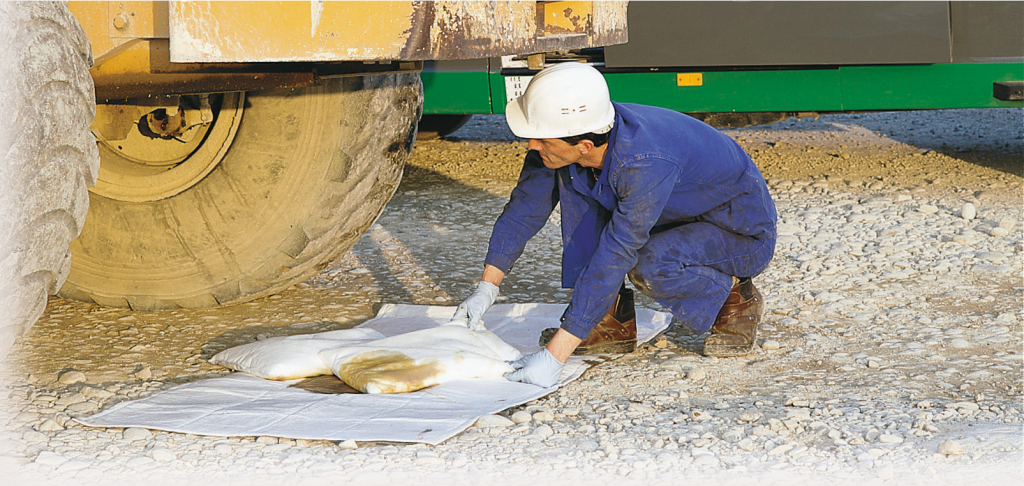 Los kits de reposición de absorbentes pueden instalarse en la maquinaria y los camiones de su obra como medida preventiva. Le ayudarán a reaccionar con rapidez y eficacia ante una contaminación accidental.