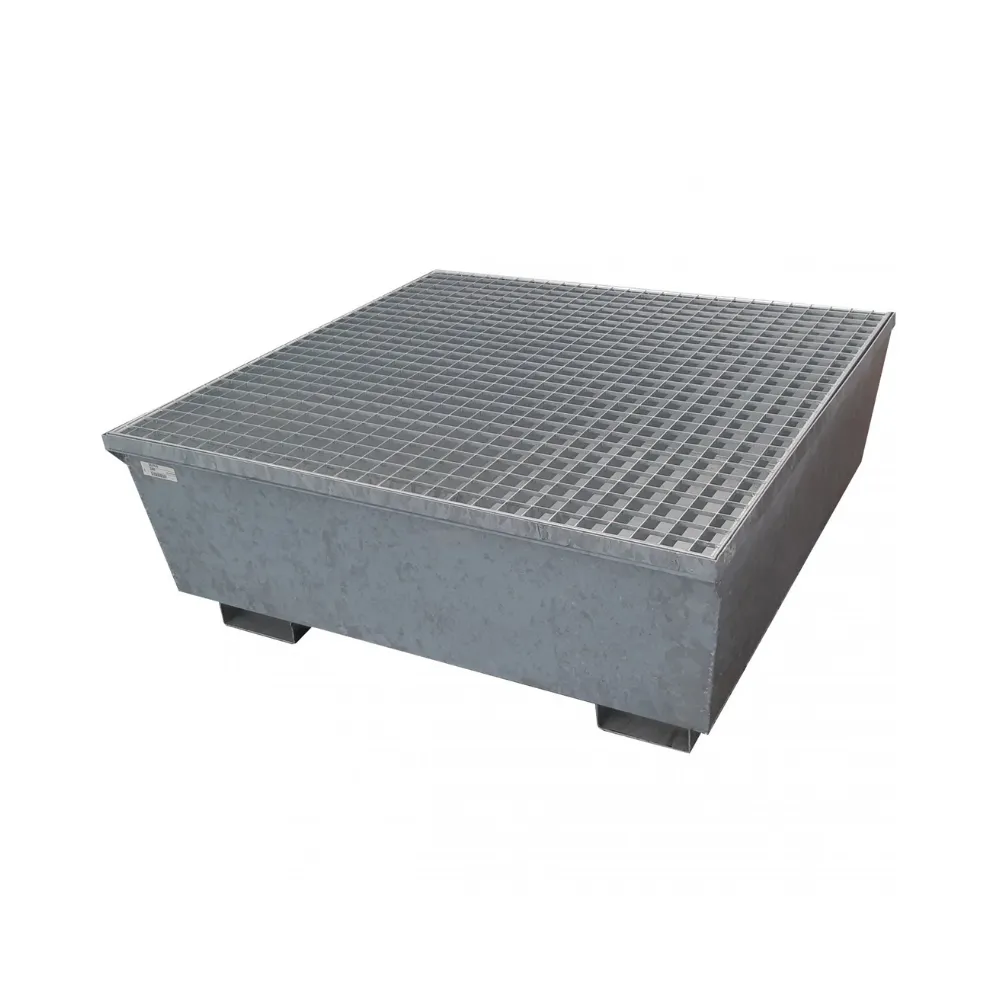 Son los más comunes en cualquier instalación. Vienen en formatos desde un jerrican de 20 litros hasta plataformas para 4 bidones de 200 litros. Un factor clave en nuestras cubetas antiderrame es el diseño de las rejillas, que suelen ser extraíbles, facilitando el acceso al fondo para la inspección y limpieza.