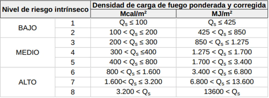 Estos tres niveles se calculan en base al tipo de materiales que se almacenarán en la nave industrial y la cada cantidad de cada uno de ellos, y que determinan la cantidad de «combustible» teórico que se puede acumular en la nave. La normativa (que puedes encontrar en el enlace de más arriba) lo describe como «Valores de densidad de carga de fuego media de diversos procesos industriales»